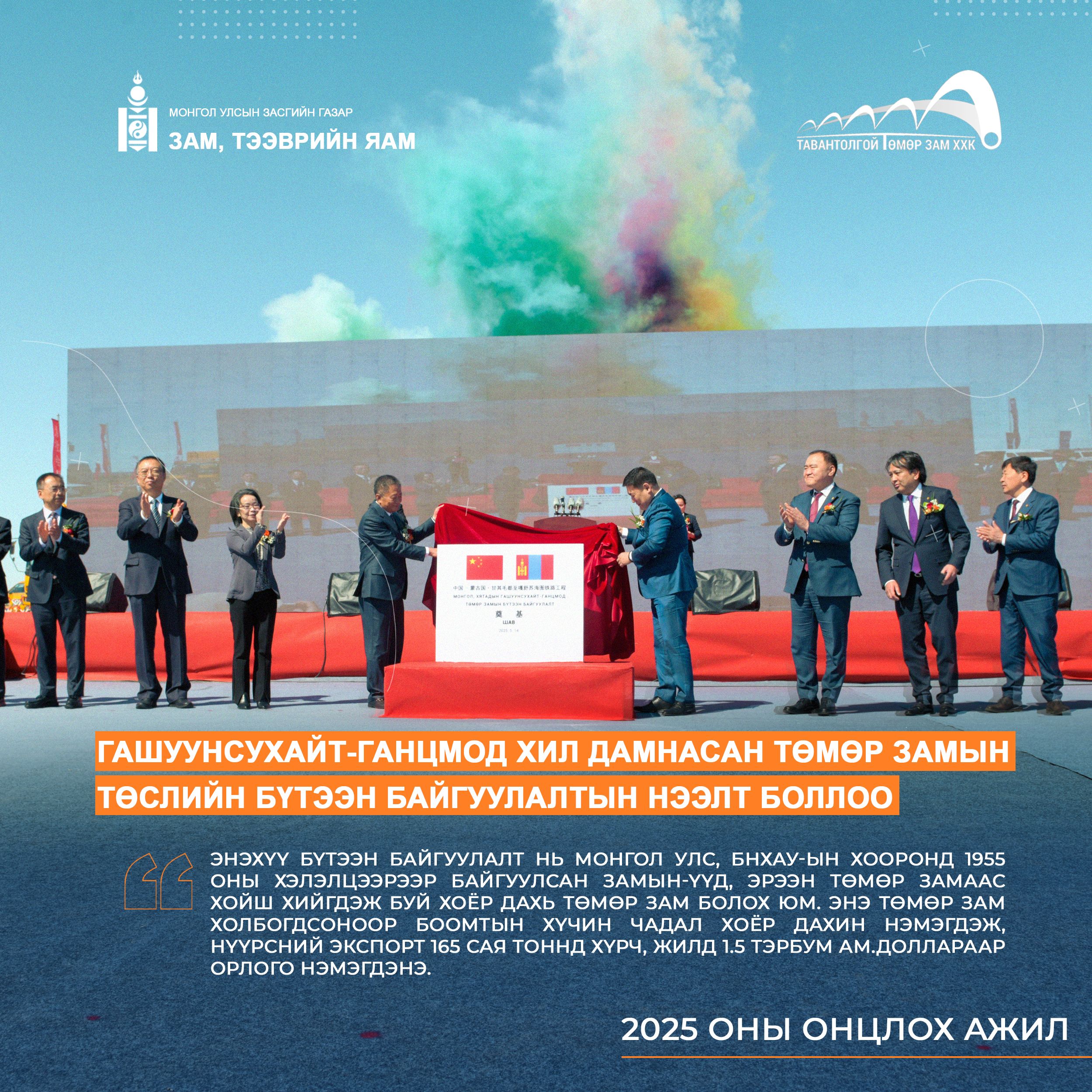 “Тавантолгой төмөр зам” ХХК-ийн ирэх жилийн гүйцэтгэлийн төлөвлөгөөнд Засгийн газрын 2024-2028 оны үйл ажиллагааны хөтөлбөрт тусгасан ажлууд, тэр дундаа 14 мега төслийн нэгдүгээрт эрэмбэлэгдсэн Гашуунсухтайт-Ганцмодны боомтын хил дамнасан төмөр замын төслийг хэрэгжүүлэх ажлын талаар тусгасан.